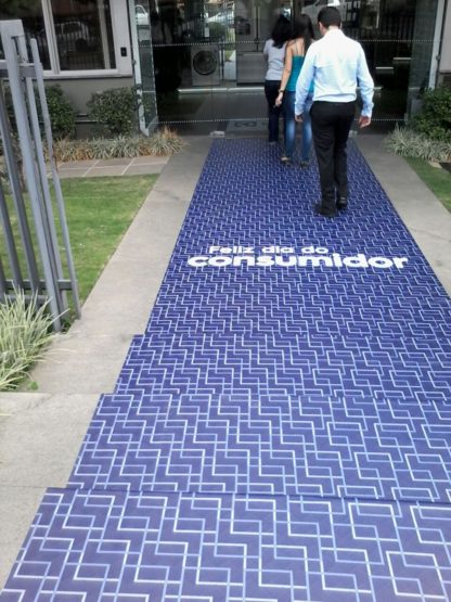 O adesivo de piso é muito utilizado na porta de entrada das lojas, para causar o primeiro impacto visual, mas o adesivo também pode ser utilizado em escadas rolantes, corredores, passagens e afins. Tudo para criar o ambiente que seu negócio necessita.