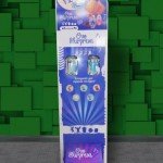 O interessante é que esses brinquedos ao serem colocados na água sofrem uma transformação e crescem até 600 % do seu tamanho original. A F9 foi contratada para executar as peças de ponto de venda expostas na loja de fábrica da Barion. Além dos tradicionais banners e painéis destaca-se o desenvolvimento de dois totens expositores em papelão. O desafio era acondicionar de forma visualmente equilibrada os brinquedos tanto em seu estado inicial quanto expandidos.