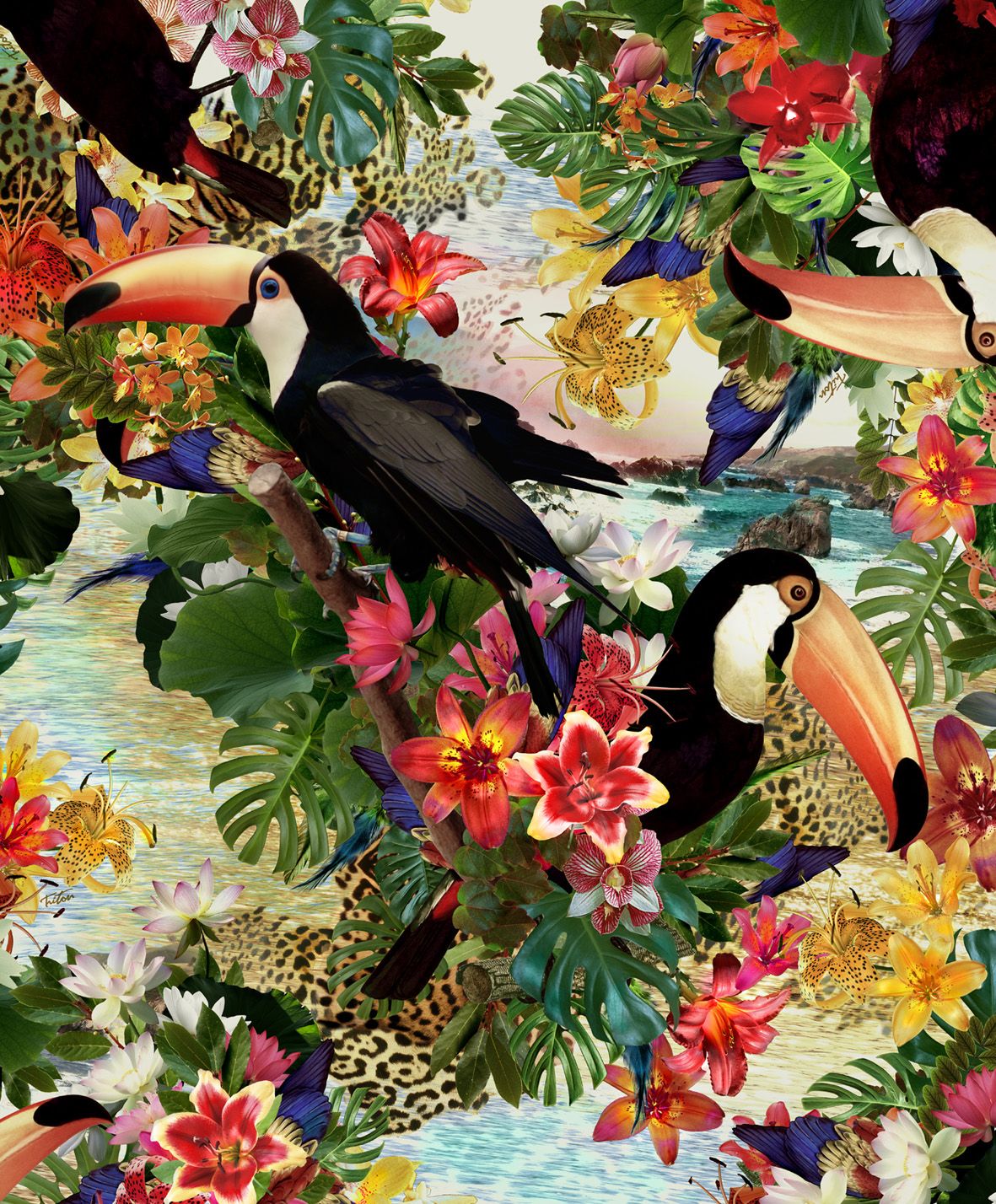 Já na estampa, os elementos visuais podem se sobrepor e gerar destaque entre os demais elementos que compõem o visual, como no exemplo abaixo. Na prática o design de superfície pode remeter a moda, mas está muito presente na decoração interna de ambientes como nos papeis de parede e nos adesivos de parede e de piso.