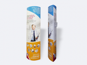 Se o produto que você vende tem um garoto(a) propaganda, esse display é muito interessante para seu negócio. Com ele é possível fazer um recorte preciso da silhueta do corpo do seu garoto propaganda. Feito em papelão, material prático e mais acessível.