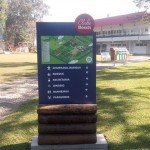 Na área externa, com o uso das letras caixa por exemplo, e principalmente na área interna ou nas imediações da empresa, através de placas e totens, sinalizando direções ou dando informações de acordo com a necessidade do cliente.