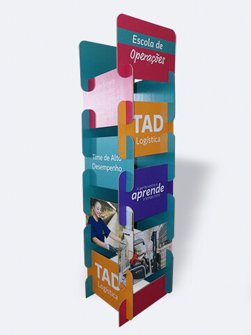 É um modelo utilizado como PDV, normalmente feito de papelão, e é fabricado em peças, podendo ser montado como um quebra-cabeça. Este formato é de fácil transporte, montagem e o visual é diferenciado. O totem pode ser personalizado de acordo com a sua necessidade.